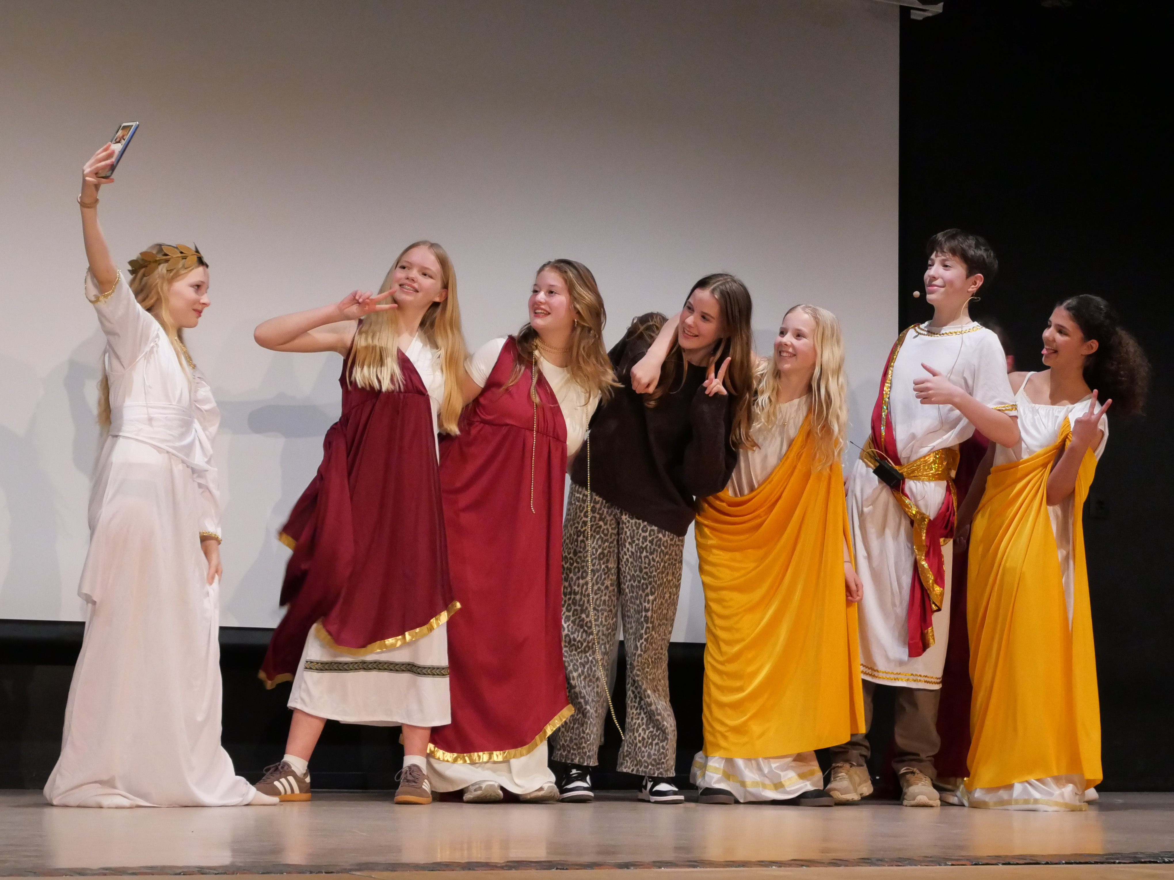 De afgelopen maanden hebben de gymnasiumleerlingen zich voorbereid op deze avond. Donderdagavond presenteerden de klassen hun voorstelling aan een divers publiek van docenten en familieleden. Ze zorgden voor een prachtige avond. Klas 1 veroverde met hun moderne versie van het liefdesverhaal van Pyramus en Thisbe de tweede plek. Winnaar van de avond was klas 6 die het verhaal van Orpheus en Eurydike speelde: een verhaal over liefde en trouw, maar ook over verdriet en verlies. Dit leverde de winnaars een mooie wisselbokaal én taart voor de volgende les op.