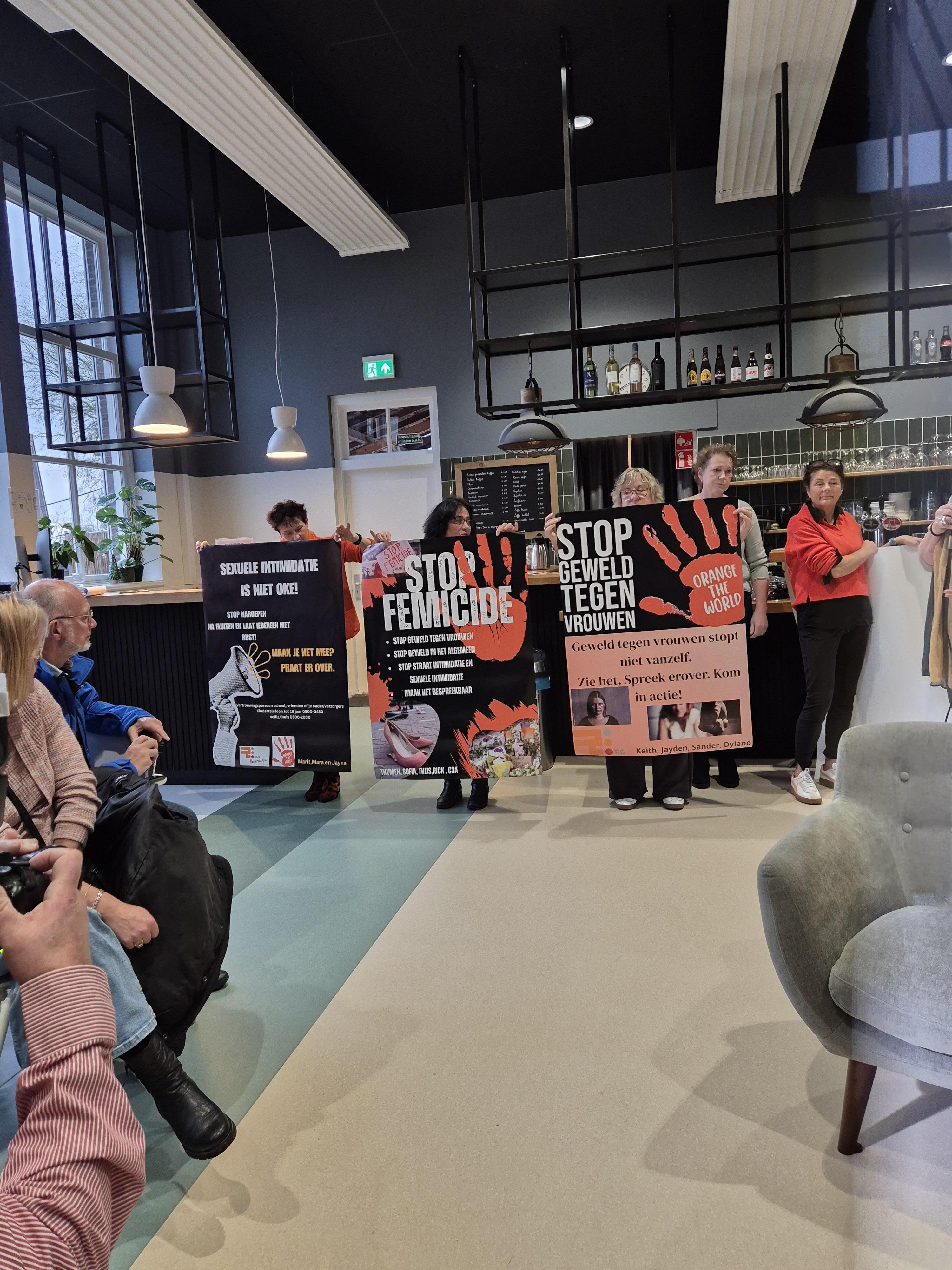 Docent maatschappijleer Liza Engelkamp: ‘We proberen het taboe bespreekbaar te maken. Het is niet goed dat er anno 2025 nog zo veel geweld plaatsvindt. Iedereen herinnert zich nog het overlijden van de 17-jarige Lisa uit Abcoude in augustus dit jaar. Zij werd op gewelddadige wijze om het leven gebracht na een avond stappen. Ik merkte in de klas dat dit een aantal leerlingen erg bezig hield en er vragen werden gesteld over femicide. Het project Orange the World sloot daar bijzonder goed bij aan.’